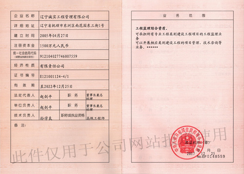 “工程監理綜合資質”它是工程監理行業中的最高資質,它既是榮譽、也是挑戰;既是動力、也是壓力。這一金字招牌將為我公司進一步增強整體實力,拓展業務、加速發展創造了有利的條件。我們要珍惜這個來之不易的榮譽,將以此為契機,總結經驗、再接再厲、向著更加美好的未來砥礪前行。