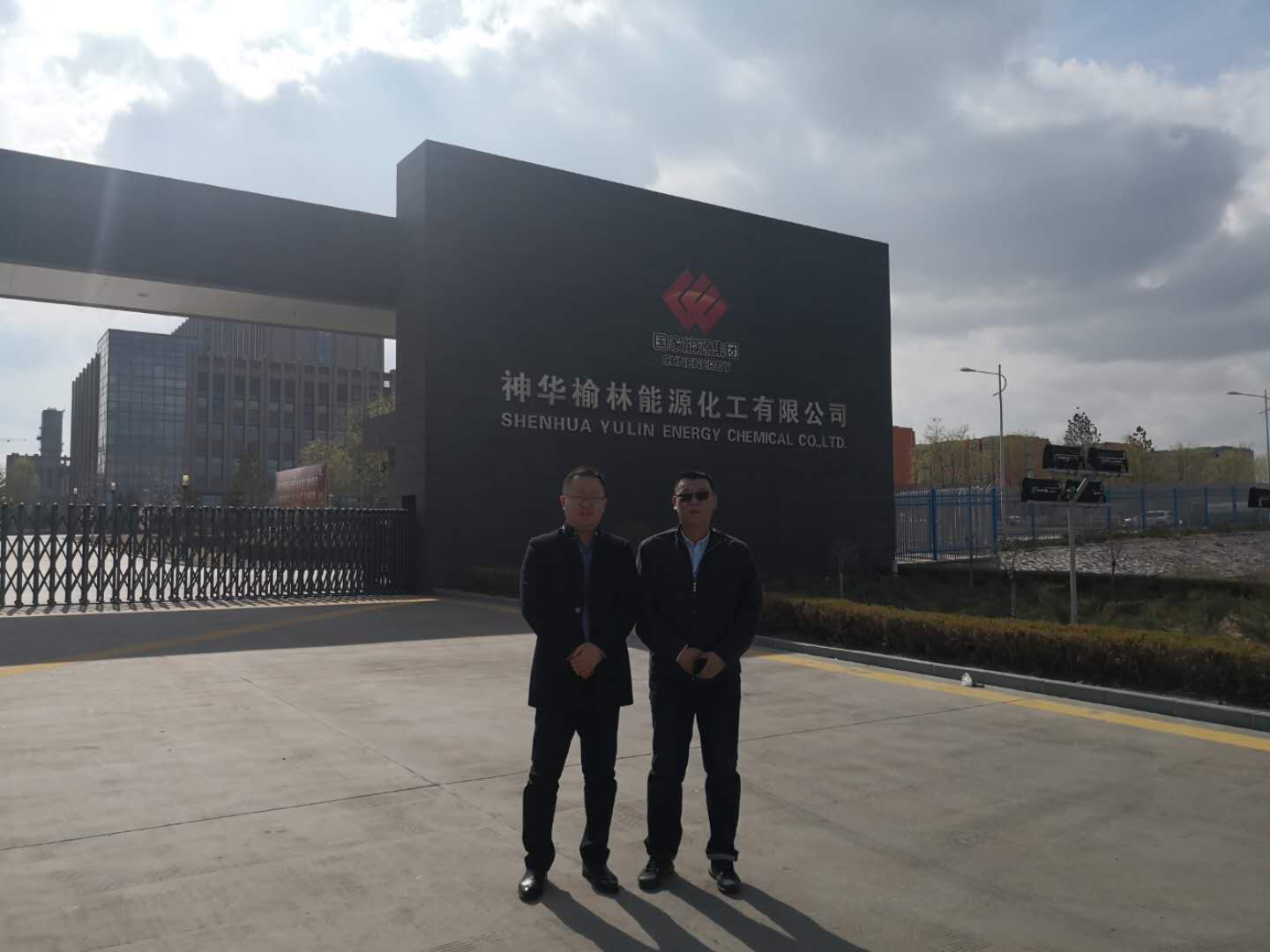 公司董事長兼黨委書記趙劍平(左一)李雙龍(右一)項目總監,視察神華榆林項目部