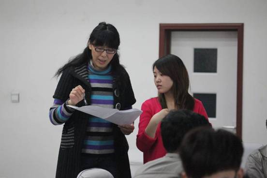 大會工作人員那紅、解靜在認真組織比賽
